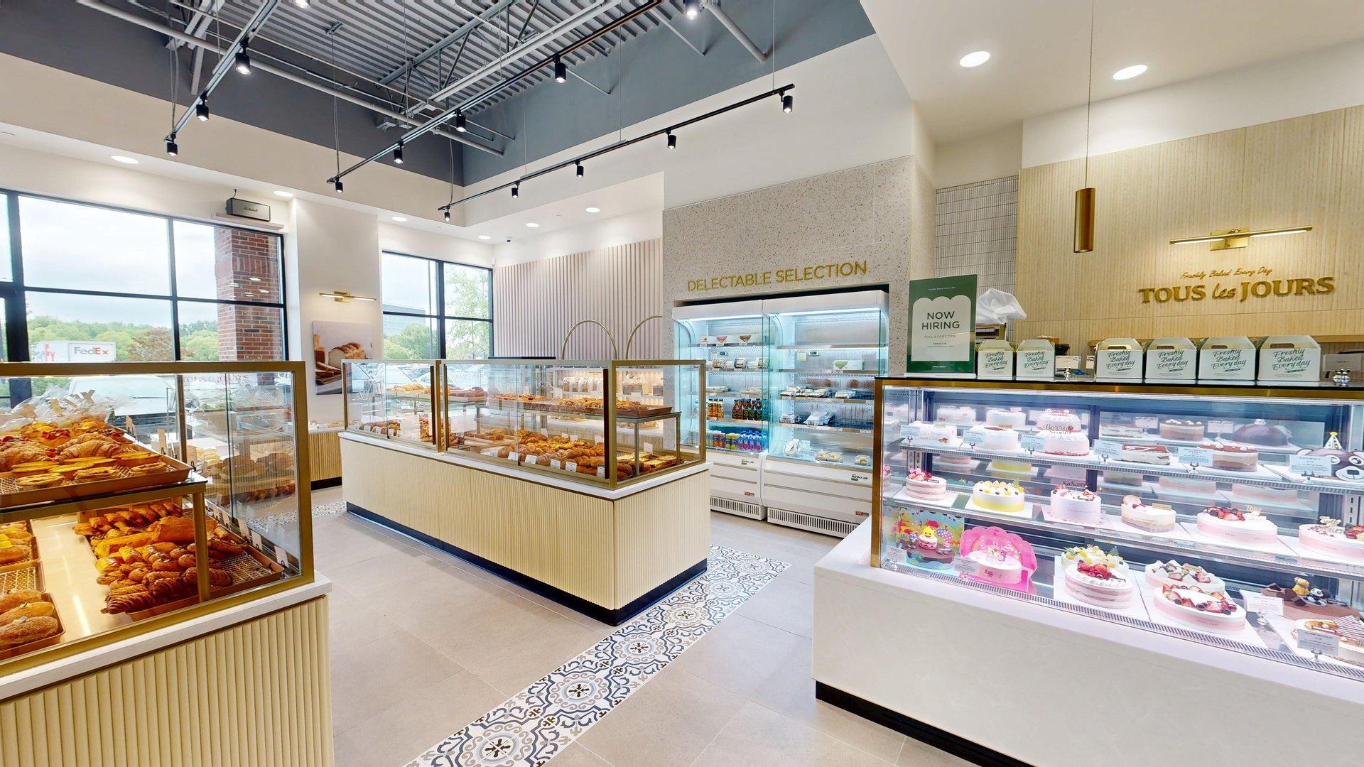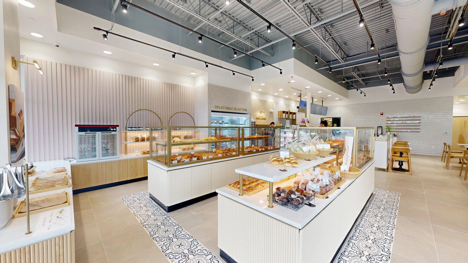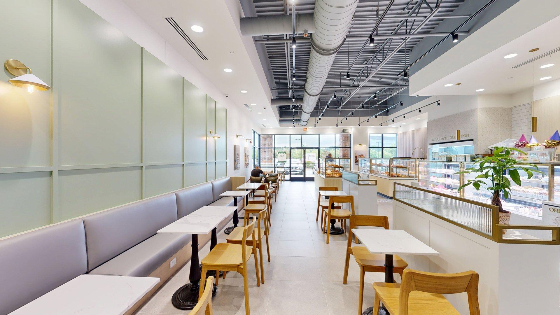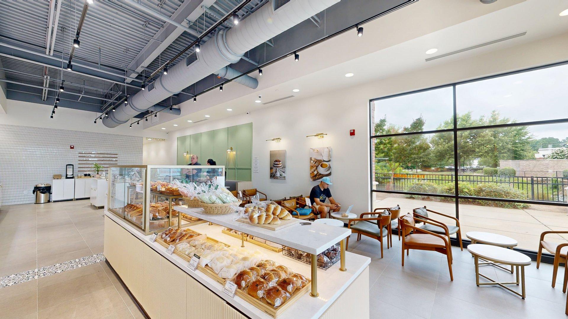 After four months of construction, the newest location of TOUS Les JOURS, a French-Asian bakery, is open for business in the South Park Village Shopping Center of Holly Springs! Gontram Architecture and Ten Penny Construction teamed up to help the new tenants transform the space from its previous use as a real estate office to what you see today.